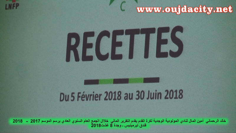 التقرير المالي لنادي المولودية الوجدية الجمع العام السنوي العادي 2017ـ 2018 خالد الرحماني امين المال