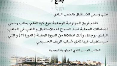 اعلان حول عملية بيع تذاكر مباراة المولودية الوجدية لكرة القدم ضد شباب الريف الحسيمي