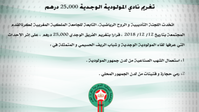 تغريم نادي المولودية الوجدية من طرف اللجنة التأديبية بمبلغ 25 الف درهم