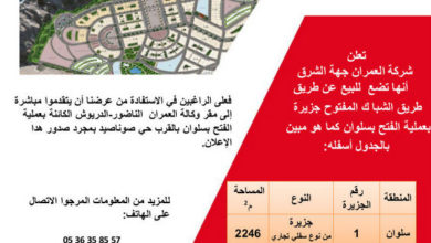 تعلن شركة العمران جهة الشرق انها تض