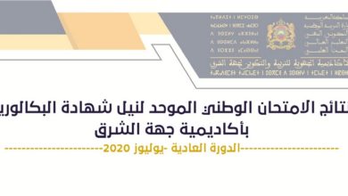 أكاديمية جهة الشرق تحقق نتائج جد مشرفة في الامتحان الوطني بنسبة نجاح بلغت %70،25 برسم الدورة العادية -دورة يوليوز 2020