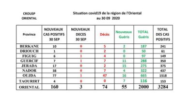 ارتفاع مخيف في عدد الاصابات بفيروس كورونا بالجهة الشرقية بصفة عامة ومدينة وجدة بصفة خاصة ب 160 اصابة خلال 24 ساعة الأخيرة