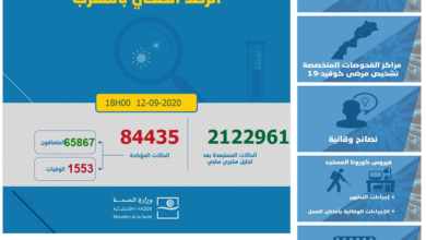 السبت 12 سبتمبر، 2020 وزارة الصحة: