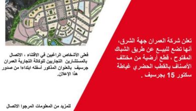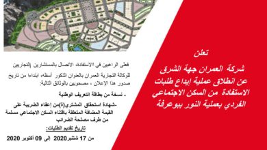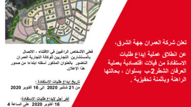 تعلن شركة العمران جهة الشرق ، انها