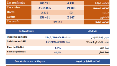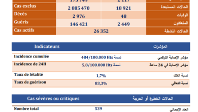 وزارة الصحة – كوفيد 19 – : المغرب يسجل 3790 صابة جديدة و3350 حالة شفاء و 70 حالة وفاة خلال الـ24 ساعة الماضية
