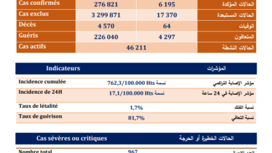 (كوفيد-19).انخفاظ محسوس في عدد الاصابات بالمغرب : تسجيل3012 إصابة جديدة و4761 حالة و 71 حالة وفاة شفاء خلال الـ24 ساعة الماضية