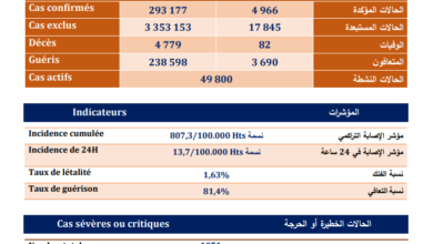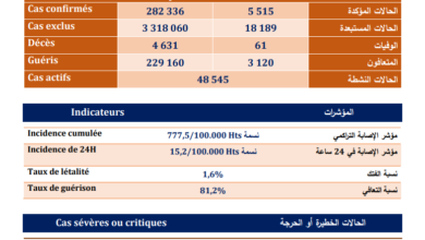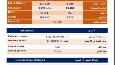 الحالة الوبائية بالمغرب (كوفيد-19).. تسجيل 5415 إصابة جديدة و4235 حالة شفاء و 82 حالة وفاة خلال الـ24 ساعة الماضية