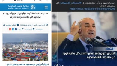 “واش فهمتو شي حاجة؟”: “الرئيس تبون يأمر بمنع تصدير كل ما تستورده الجزائر من منتجات استهلاكية”