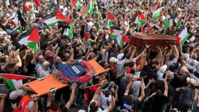 اعتداء جنود الكيان الصهيوني على جنازة الصحافية الفلسطينية شرين بعد قتلها