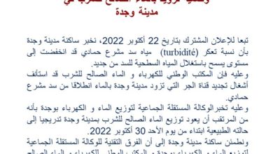 الوكالة المستقلة الجماعية لتوزيع الماء والكهرباء بوجدة : بلاغ حول وضعية تزويد ساكنة وجدة بالماء الصالح للشرب