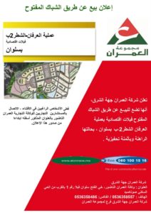 تعلن شركة العمران جهة الشرق انها تضع للبيع عن طريق السباك المفتوح فيلات اقتصادية بعملية العرفان الشطر 2 ب ـ بسلوان ، بحالتها الراهنة وباثمنة تحفيزية
