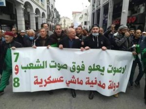وتعكس شعارات “دولة مدنية ماشي عسكرية”، و”تبون مزوّر جابوه العسكر..ماكانش الشرعية..الشعب تحرر هو اللي يقرر دولة مدنية” و”دولة مدنية وليس عسكرية” و”الجنرالات إلى المزبلة” و”الجزائر ستستعيد استقلالها من سلطة النظام الحاكم”، مطالب الشعب الجزائري الذي عزم على إسقاط نظام العسكر وبناء دولة مدنية بعيدا عن قرارات وتدخلات الجيش في الشؤون السياسية.
